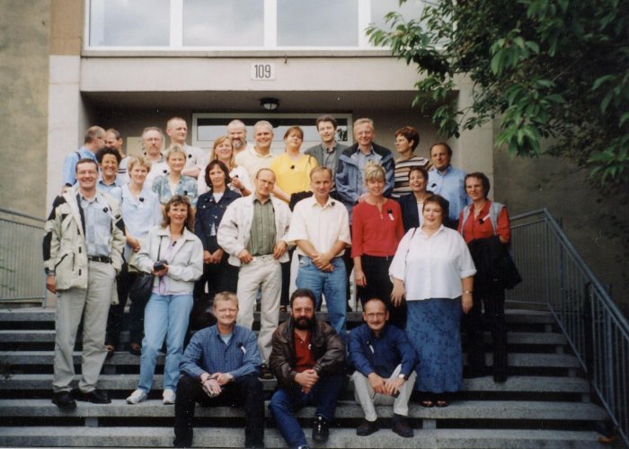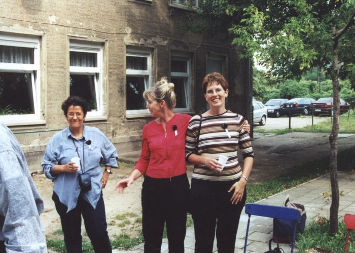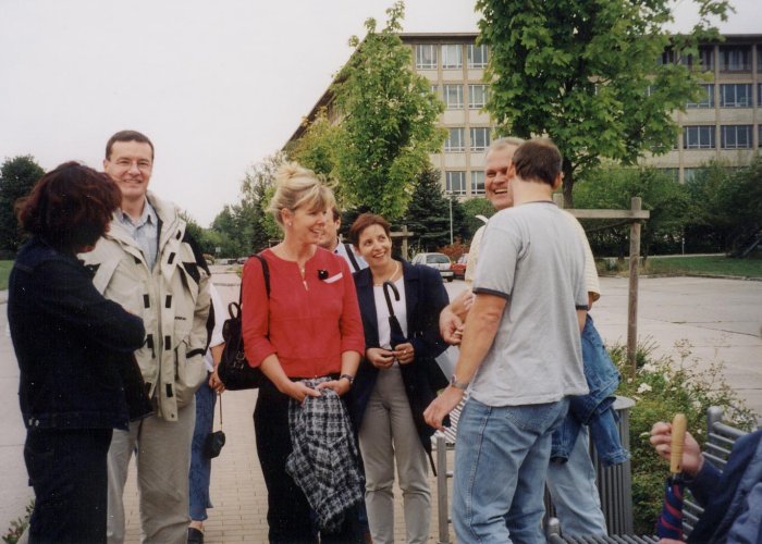 Birgit Fischer, Klaus Urban, Uta Klause, Annekathrin Zeh, Ekkehard Küstermann, Hardy Reuter auf dem Hochschulgelände