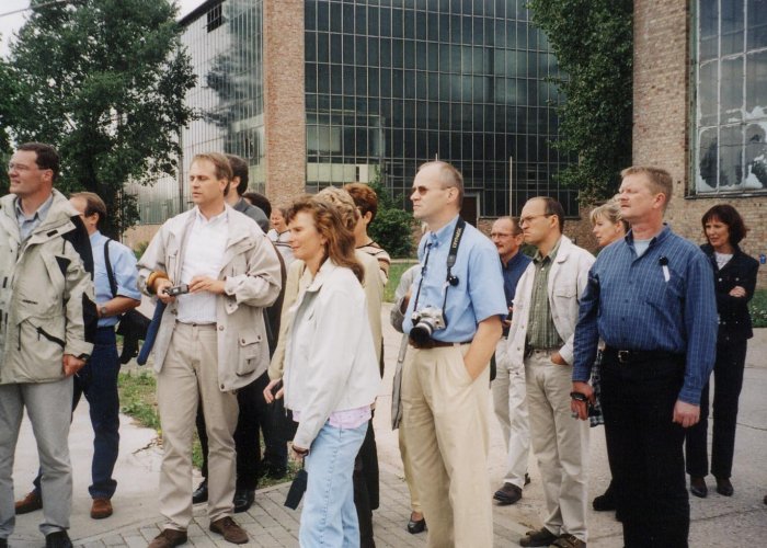 Am Freigelände des Chemiemuseums: Klaus Urban, Thomas Noßke, Brunhild Staatz, Ulf-Dieter Pitzing, Christoph Kunert, Frank Olitzsch
